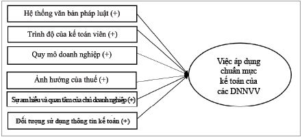 Năm 2018, Trần Thị Kim Chi và cộng sự sử dụng phương pháp nghiên cứu giống như Đặng Ngọc Hùng (2016), nghiên cứu các nhân tố ảnh hưởng đến việc vận dụng chế độ kế toán của các DNNVV ở Đồng bằng sông Cửu Long, dữ liệu nghiên cứu là 350 DNNVV, kết quả có 07 nhân tố là: Thuế, mức độ hướng dẫn của văn bản về chế độ kế toán, cơ sở hạ tầng, nhận thức của nhà quản trị, người sử dụng thông tin và nhu cầu thông tin kế toán, người làm kế toán và quy mô doanh nghiệp ảnh hưởng đến vận dụng chế độ kế toán. Nguyễn Thị Ngọc Điệp, Nguyễn Quốc Thịnh, Nguyễn Huy Hoàng (2020), nghiên cứu dựa trên cơ sở lí thuyết thể chế xã hội học hiện đại, lí thuyết thông tin hữu ích, lí thuyết ủy nhiệm, lí thuyết tín hiệu và lí thuyết hành vi dự định để xây dựng giả thuyết và mô hình nghiên cứu gồm các nhân tố: Tính bắt buộc tuân thủ chuẩn mực kế toán, tổ chức tư vấn nghề nghiệp, quy mô doanh nghiệp, áp lực từ thuế, kinh nghiệm và trình độ người làm kế toán, kiểm toán độc lập, sự am hiểu và quan tâm của nhà quản lí, mối quan hệ chi phí - lợi ích, sự phát triển cơ sở hạ tầng, dữ liệu của nghiên cứu thu thập từ 297 quan sát tại Thành phố Hồ Chí Minh. Các phương pháp nghiên cứu là kiểm định Cronbach’s Alpha, phương pháp phân tích EFA và hồi quy tuyến tính đa biến. Kết quả nghiên cứu cho thấy, có 05 nhân tố ảnh hưởng tích cực đến việc áp dụng chuẩn mực kế toán của các DNNVV tại Thành phố Hồ Chí Minh, bao gồm: Trình độ và kinh nghiệm của kế toán viên, quy mô doanh nghiệp, tính tuân thủ hệ thống chuẩn mực kế toán, sự am hiểu và quan tâm của nhà quản lí, sự phát triển cơ sở hạ tầng.