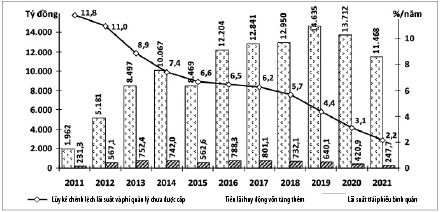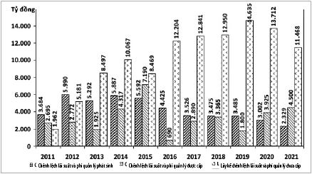 số chênh lệch lãi suất và phí quản lý chưa cấp giai đoạn 2011 - 2021