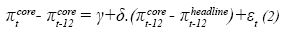 Tuy nhiên, sự hoàn nguyên của lạm phát tổng thể về xu hướng dài hạn chỉ là một phần của vấn đề. Phần còn lại là sự cần thiết trong đánh giá sự hoàn nguyên của lạm phát cơ bản về xu hướng lạm phát. Trong trường hợp lạm phát cơ bản không trở về xu hướng của lạm phát thì nó sẽ chỉ ra rằng các cú sốc đối với lạm phát, chẳng hạn như những nguyên nhân do giá hàng hóa tăng đột biến, sẽ dẫn đến lạm phát kỳ vọng và sự điều chỉnh giá cả - tiền lương, gây áp lực lên lạm phát cơ bản và là tín hiệu cảnh báo đáng lưu tâm cho các nhà hoạch định chính sách. Để kiểm định vấn đề này tại Việt Nam, một mô hình tương tự cho lạm phát cơ bản cũng được thiết lập như sau: