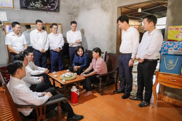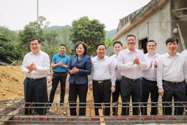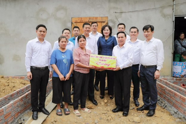 Đoàn do đồng chí Nguyễn Thị Hồng, Ủy viên Trung ương Đảng, Thống đốc NHNN; đồng chí Nguyễn Long Hải, Ủy viên dự khuyết BCH TW Đảng, Bí thư Đảng ủy khối Doanh nghiệp Trung ương; đồng chí Bùi Tiến Lực, Ủy viên Ban Thường vụ Tỉnh ủy, Trưởng Ban Dân vận Tỉnh ủy, Chủ tịch UBMTTQ Việt Nam tỉnh Hòa Bình đã đến thăm, dự lễ khởi công, làm nhà cho hộ gia đình bà Xa Thị Nhượng, sinh năm 1968, dân tộc Mường ở xóm Doi, xã Hiền Lương, huyện Đà Bắc, tỉnh Hòa Bình. Gia đình bà Xa Thị Nhượng, là hộ nghèo có 5 nhân khẩu