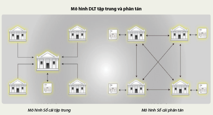 - DLT là một hệ thống trao đổi dữ liệu, cung cấp cho trung tâm quản lý hành chính chịu trách nhiệm thực hiện các hành động giữa những người tham gia, lưu trữ, bảo mật đa dạng dữ liệu, thuật toán xác minh giao dịch (đồng thuận) có thể điều chỉnh sự bất bình đẳng, mối đe dọa quyền tập trung đối với một số lượng hạn chế người tham gia, những người sở hữu một phần lớn số dư, rủi ro biến động của tiền điện tử nội bộ...