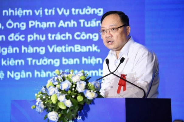 Ông Phạm Anh Tuấn – Vụ trưởng Vụ Thanh toán (NHNN) trình bày tham luận