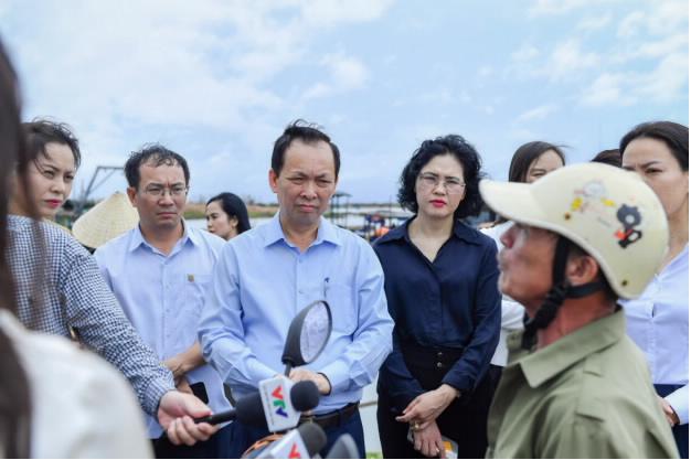 Buổi chiều cùng ngày, Phó Thống đốc Thường trực Đào Minh Tú cùng đoàn công tác đã tới thăm, chia sẻ và động viên đối với một số hộ dân nuôi trồng thuỷ sản tại thị xã Quảng Yên (Quảng Ninh) bị ảnh hưởng nặng nề bởi cơn bão số 3.