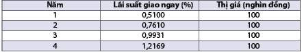 Từ các số liệu này, nhà phân tích xác định lãi suất giao ngay và lãi suất kỳ hạn 1 năm như sau: