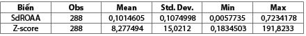 Về sự biến động của tỉ suất lợi nhuận trên tài sản trung bình, độ lệch chuẩn 0,126 cho biết sự biến động này có thay đổi qua các ngân hàng và qua các năm. Các ngân hàng đã củng cố được hệ thống tài chính khi sự biến động của tỉ suất lợi nhuận trên tài sản trung bình có xu hướng giảm. (Bảng 1)
