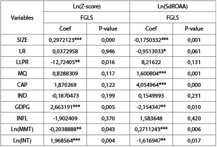 Thứ năm, không tìm thấy sự tác động có ý nghĩa thống kê của các biến IND và INFL lên 02 biến Ln(Z-score) và Ln(SdROAA) với p-value của IND lần lượt là 0,199 và 0,37 của INFL lần lượt là 0,231 và 0,42.