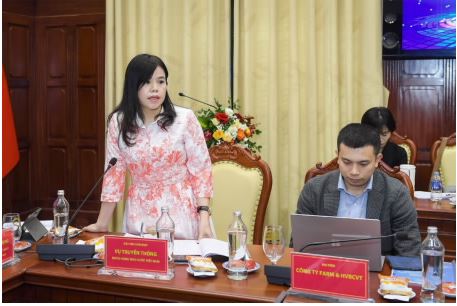 Bà Kim Lan Anh - Phó Vụ trưởng Vụ Truyền thông phát biểu tại Hội thảo
