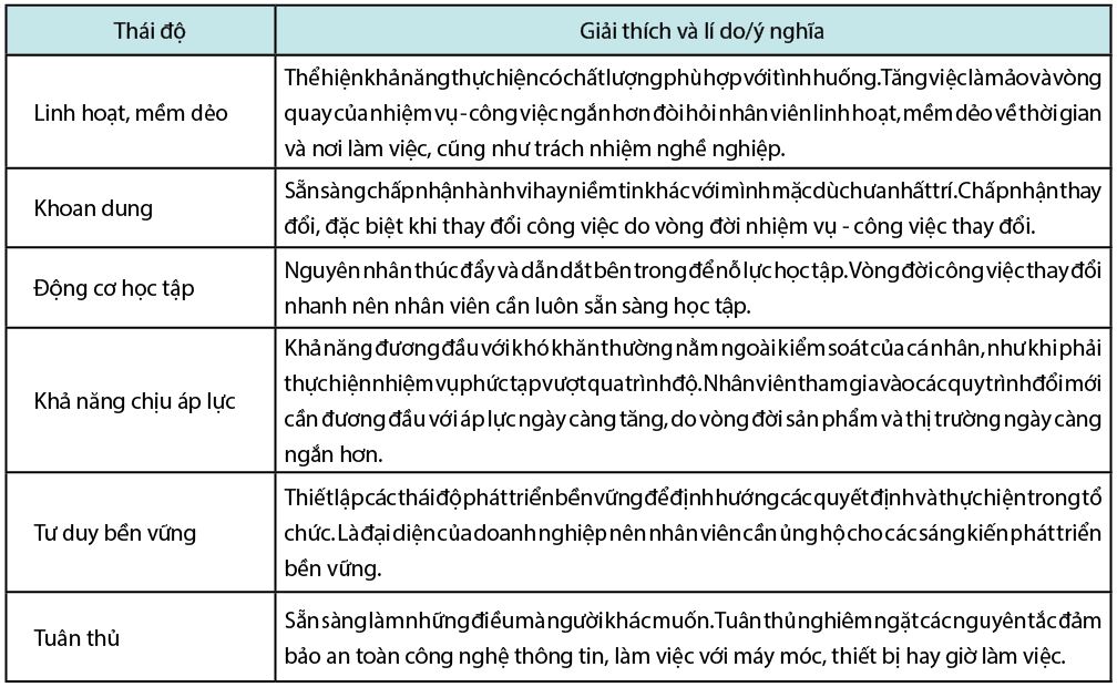 Bảng 1. Các thái độ cần thiết của nhân lực trong bối cảnh chuyển đổi số