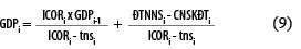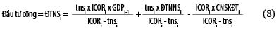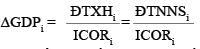 (i) Từ phương trình (12) ta thấy, tăng trưởng GDP phụ thuộc vào 2 hệ số mi và qi. Trong trường hợp ĐTNNSi không đổi, CNSKĐTi không đổi, khi ICORi giảm thì mi và qi tăng.