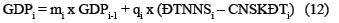 (iv) Tổng sản phẩm nội địa năm i bằng tổng của giá trị GDP năm trước đó và tăng trưởng GDP của năm i: