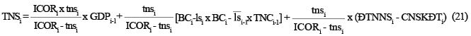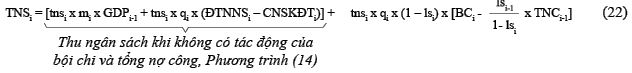 Nếu gọi phần thu ngân sách không có tác động của nợ công năm i, phương trình (22) và (14), là TNSiKNC, ta có: